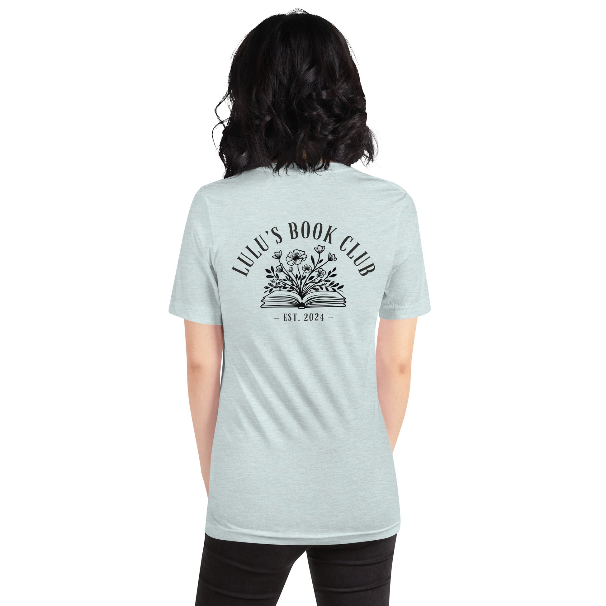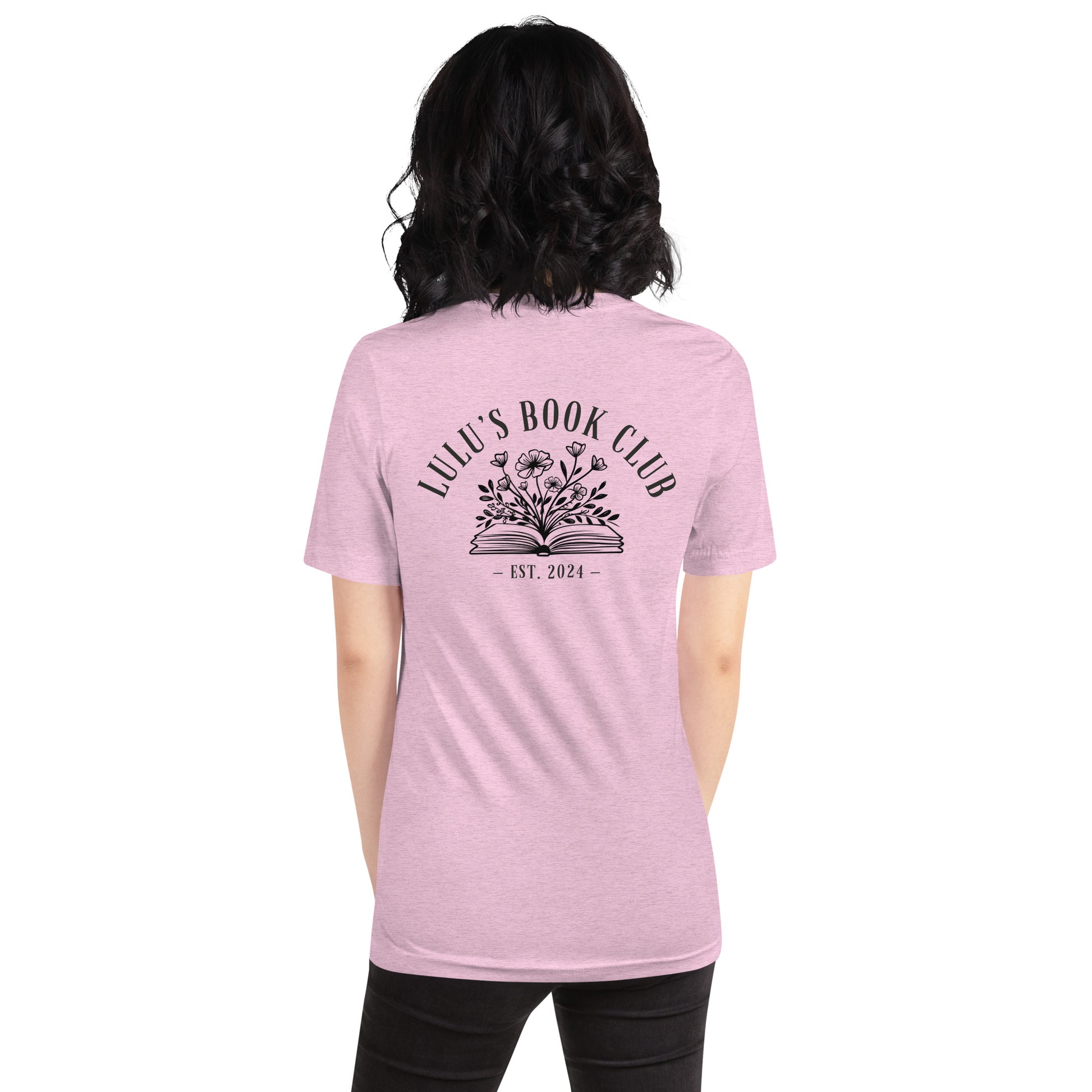But wait, there's more! Turn around, and you'll find the adorable Lulu's Book Club logo, proudly displayed on the back. It's like being a part of an exclusive literary club, wherever you go.